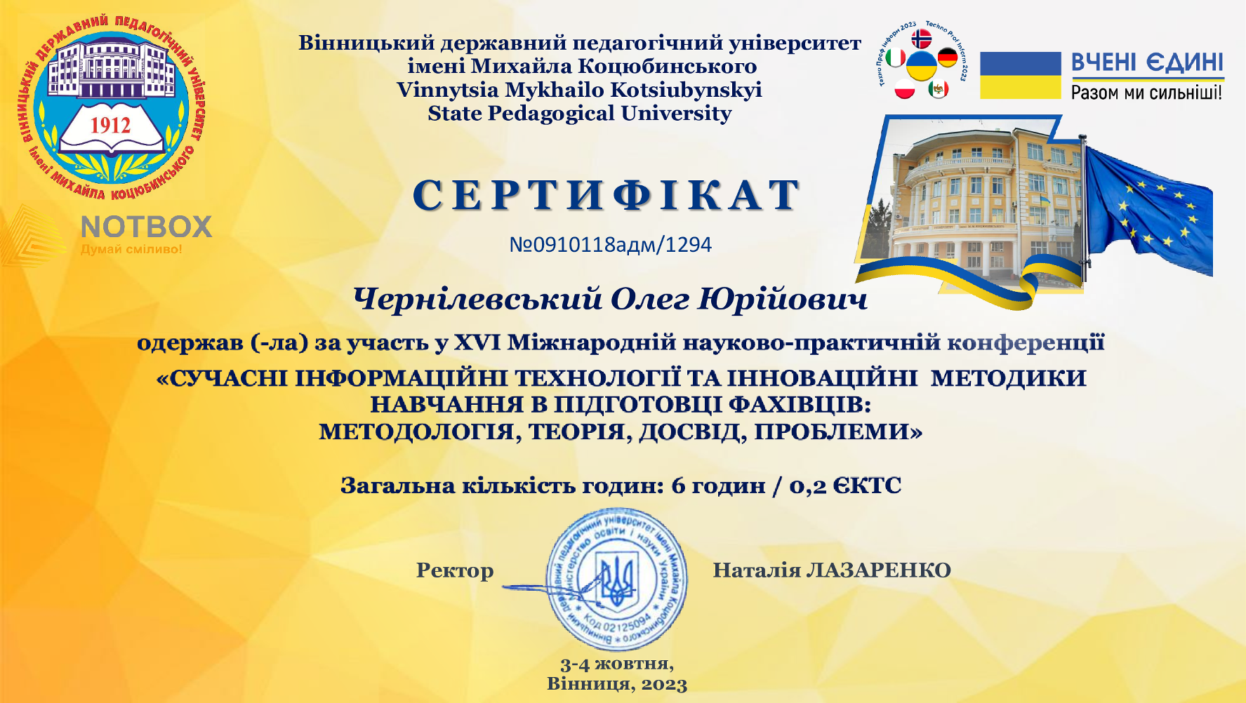 «Сучасні інформаційні технології та інноваційні методики навчання в підготовці фахівців: методологія, теорія, досвід, проблеми»