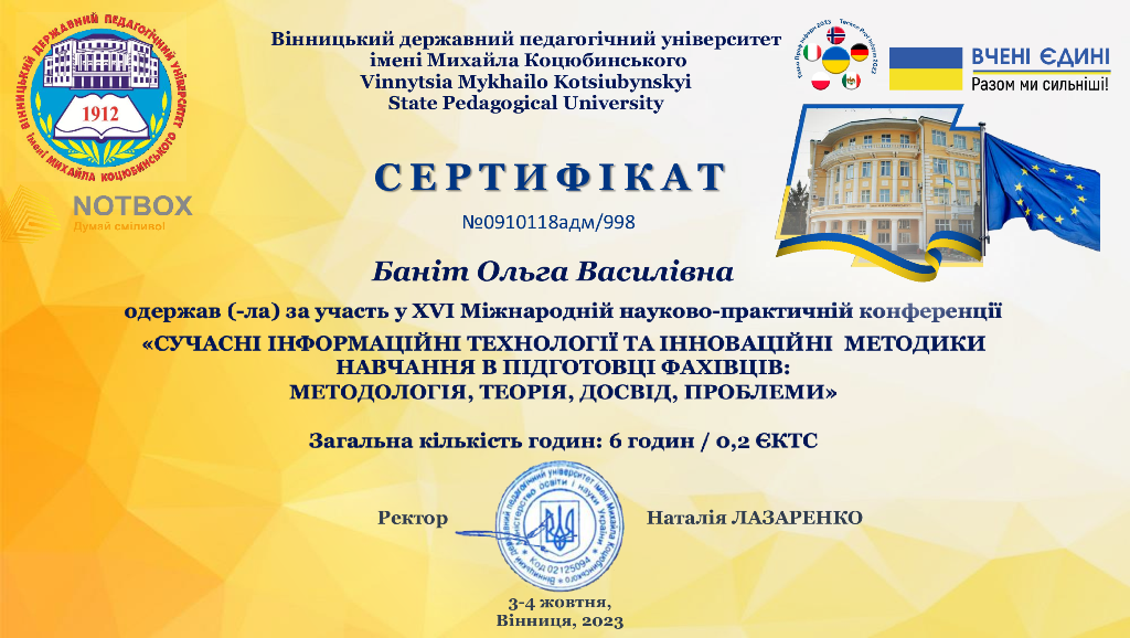 «Сучасні інформаційні технології та інноваційні методики навчання в підготовці фахівців: методологія, теорія, досвід, проблеми»